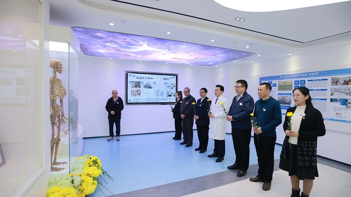 “他们用自己的躯体架起了学子们通往医学殿堂的桥梁……”,真人百家乐 党委书记谭机永在活动致辞中谈到,遗体和器官捐献者们用大爱推动了现代医学教育和医疗事业的发展,无言地为社会和人类作出了最后的贡献。谭机永勉励同学们要感悟生命价值,传承奉献精神,潜心学习钻研,勇攀医学高峰。