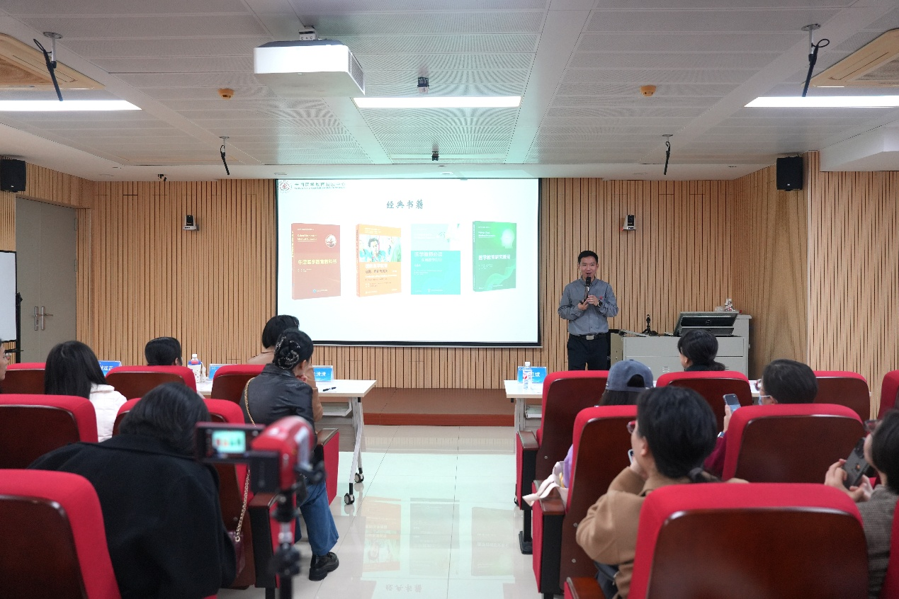 在讲座中,吴红斌深入解读了医学教育研究的重要意义、选题策略与设计规范。他指出,医学教育研究与教师工作紧密相连,鼓励教师转变观念、立足实践,从文献中聚焦方向、以理论构建框架、在行动中稳步推进,将教学场景转化为研究场域,把日常教学问题转化为学术课题,并通过研读权威期刊把握前沿动态,依托理论框架提升研究深度,逐步实现从教学实践者到教育研究者的跨越。在交流互动环节,与会教师围绕AI赋能教育等热点话题踊跃提问,吴红斌结合自身教研经验逐一解答,现场氛围热烈活跃。