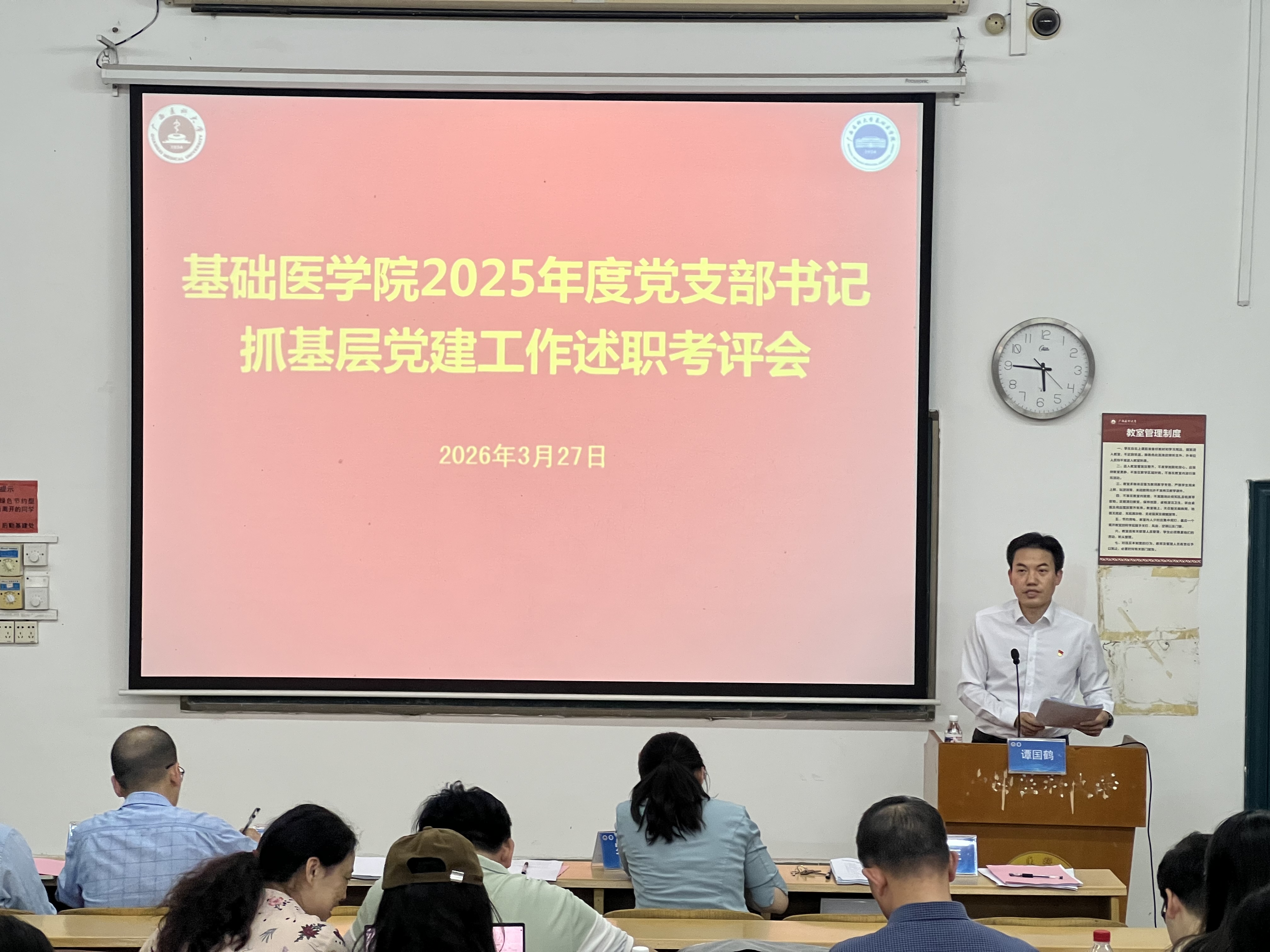 谭国鹤在会议总结中指出,基层党建是学院各项工作的根基,党支部书记作为抓基层党建第一责任人,履职成效直接关系学院事业发展大局。各党支部书记一要把准党建工作方向,将政治要求贯穿基层党建工作全过程;二要拧紧党建责任链条,加强对党支部工作的部署和督办;三要紧扣基层党建年度重点任务,持续推进党支部标准化规范化建设;四要将党建工作与学院规划发展工作同谋划、同部署、同落实,实现党建与业务同频共振、深度融合。