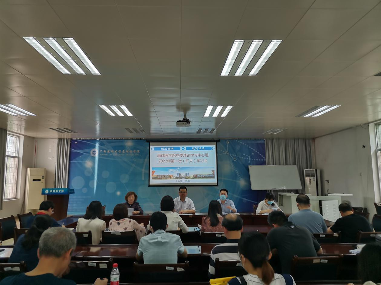 4月29日下午,真人百家乐 党委在102馆三楼会议室召开理论学习中心组2022年第一次(扩大)学习会。学院党委委员、党支部书记、各科室主任参加会议,会议由学院党委书记谭机永主持。