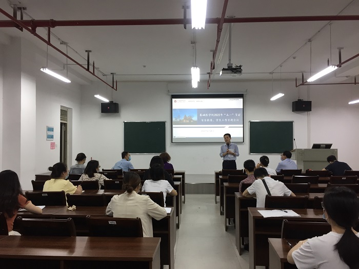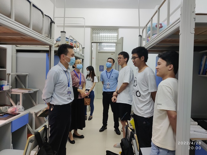 谭国鹤院长在学生安全专题会议强调,第一,要提高政治站位,做好学生引导,始终绷紧疫情防控这根弦;第二,学工队伍要做好表率,关注学生思想动态,做到教育为先,防范为要;第三,加强对学生心理“疏导引”,深入学生宿舍了解倾听学生需求、及时回应学生合理诉求。谢丽嘉副书记就“五一”假期学生安全做了详细部署,压实责任,守好责任田,为校园安全稳定做出应有贡献。随后,学院领导带队走访学生宿舍。