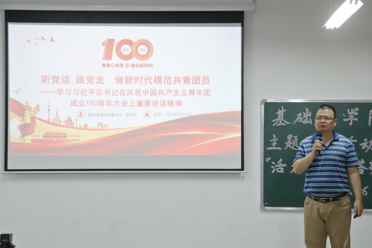 会议伊始,学院党委谭机永书记带领全体与会人员重温习近平总书记在庆祝中国共产主义青年团成立100周年大会上的重要讲话精神。答辩会上,各团支部代表依次进行答辩,采用风采视频与PPT相结合的方式对组织建设、特色活动和支部荣誉等方面进行展示。会议期间的青年大学习知识竞答和团支部情景剧环节,则丰富了与会人员的知识储备,极大地激发了大家爱党爱国爱社会主义的热情。