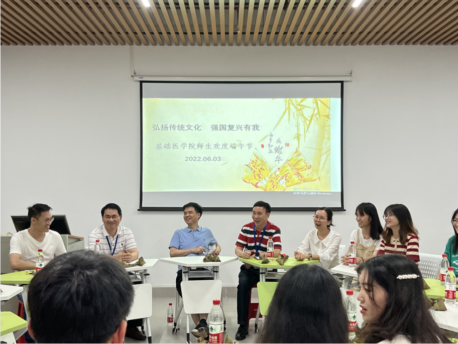 武鸣校区值班校领导曾志羽副校长、伍伟锋副校长、学校职能部门领导、学院领导应邀参加了师生端午茶话会。校领导对学生骨干、发展对象、入党积极分子、学生组织代表表达了端午佳节美好祝福,师生互动交流,并对基础学子给予殷切期望:第一,希望同学们牢记医学生“健康所系 性命相托”的神圣使命,把专业知识和技能学扎实记牢固,为从事医疗事业打下坚实基础;第二,希望同学们树立创新创业新理念,培养适应教育改革社会变革的意识,努力成为社会发展需要的复合型医学人才;第三,希望同学们处理好学习与工作的关系,坚持科学的学习方法,服务同学奉献自我,努力做到学习工作两不误。