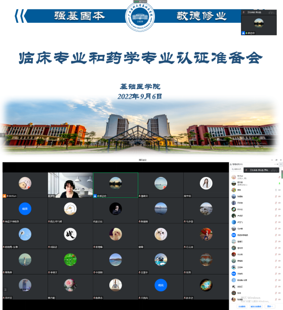 为做好临床医学和药学专业认证相关工作,2022年9月6日,真人百家乐 召开临床专业和药学专业认证准备线上会议。与会人员包括学院罗彬副院长、教研科郭忠信科长、各教研室/平台正副主任及教学秘书。