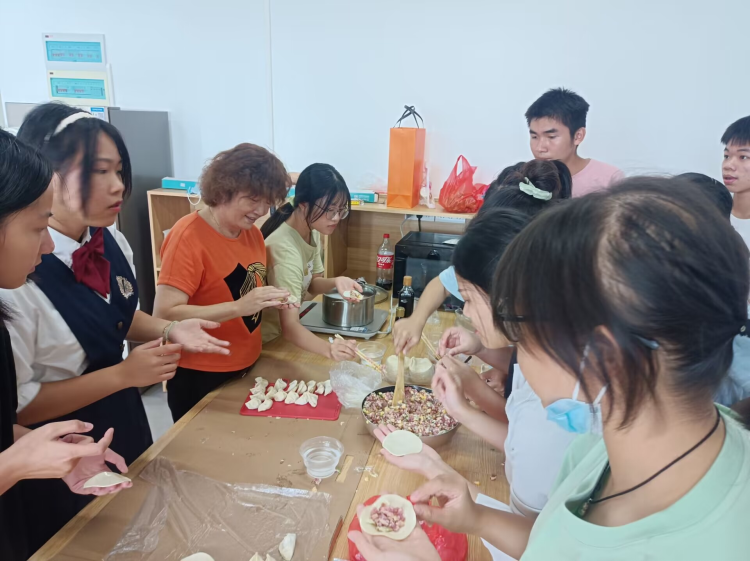 学院党委副书记谢丽嘉与学生一起包饺子欢庆国庆活动