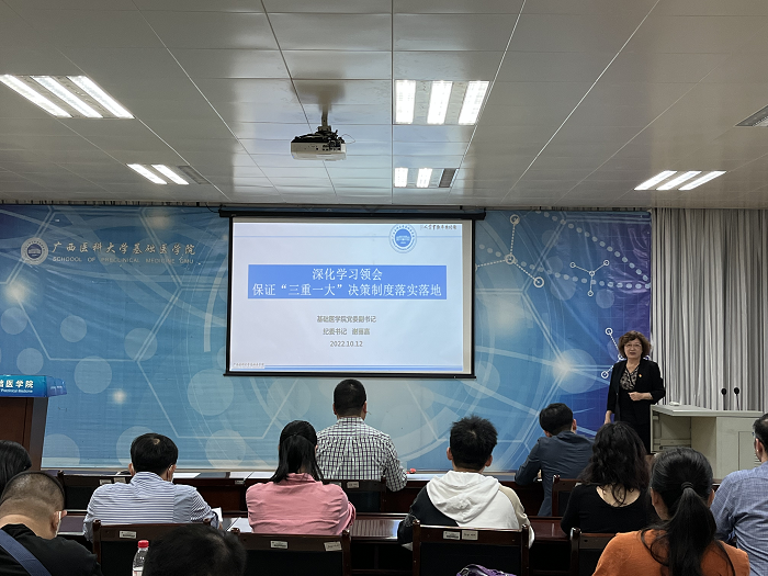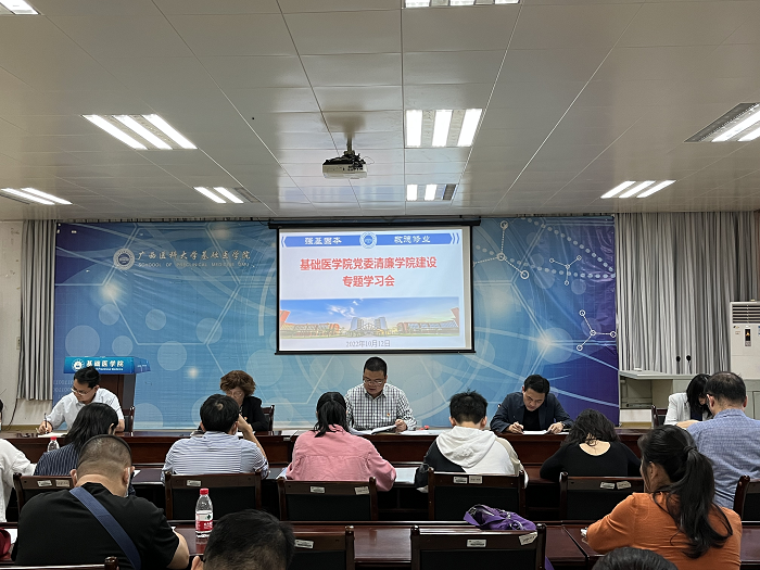 为贯彻落实《大力推进清廉医大建设实施方案》和《关于扎实推进清廉医大建设的十条措施》等相关文件精神,推进学院清廉建设,10月12日下午,真人百家乐 召开清廉学院建设专题学习会,开展“三重一大”决策制度学习培训,本次培训活动由学院纪委书记谢丽嘉主讲,学院党政领导班子成员、各党支部书记、各教研室主任以及学院纪检监察干部等40余人参加了本次会议。