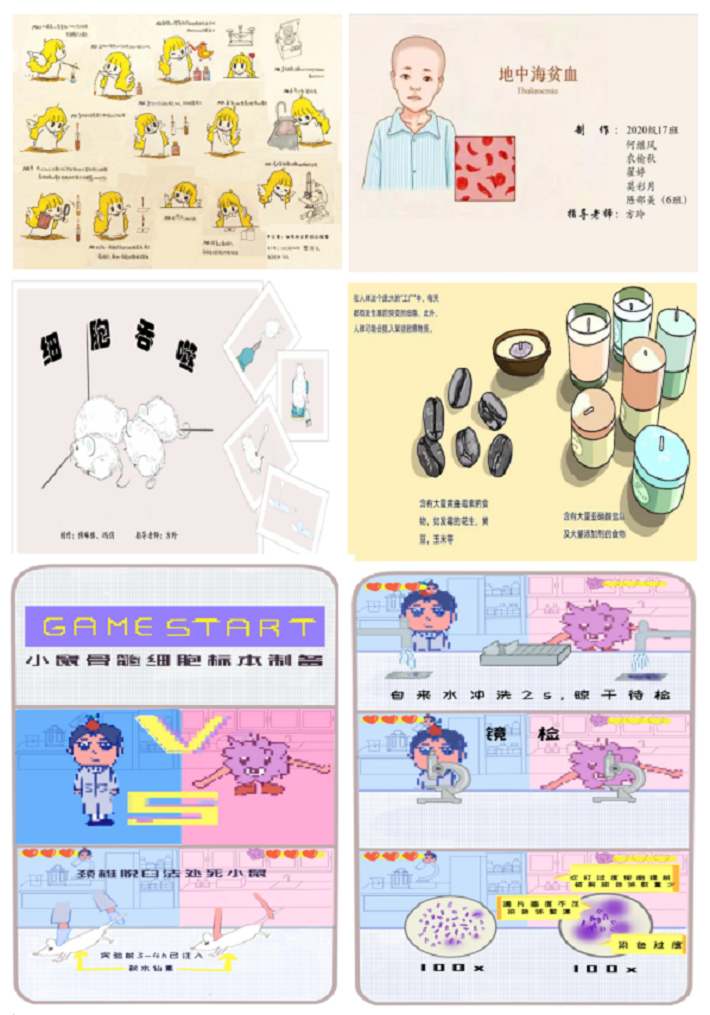 在本届创意课堂学科竞赛中,经过指导老师的悉心辅导,同学们充分发挥创作智慧,将枯燥的细胞实验操作流程和原理用漫画、故事、模型等形式进行呈现,创作了诸如《细胞融合实验流程图》、《地中海贫血》、《来自星星的团》等许多优秀作品,通过学生民主投票及教师评选,本次共评选出一等奖作品8个, 二等奖作品14个, 三等奖作品18个,并对获奖作品的参赛选手代表颁发了获奖证书。