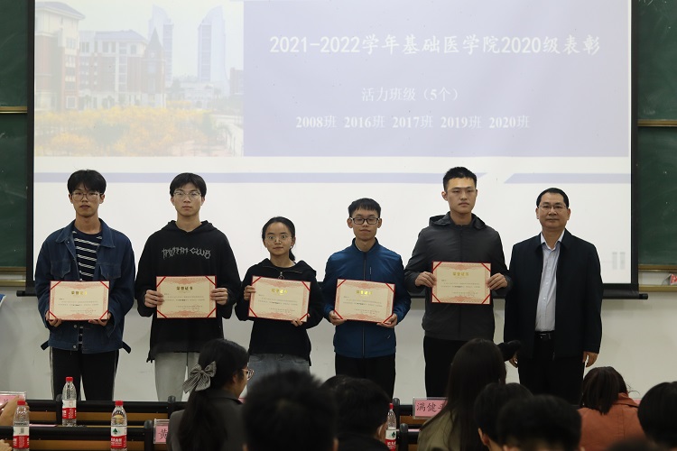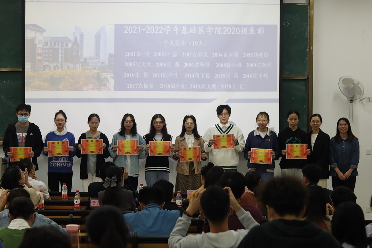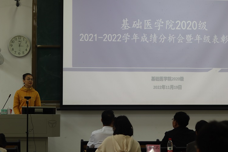 分享环节,个人成绩代表吴美欣从学习、工作、科研三个方面,分享了如何平衡学习、工作和科研的方法;校级先进班集体标兵代表伍菲菲同学以视频展示一个团结友爱、拼搏进取的临床医学双语班,总结出紧抓班级凝聚力、纪律力、引领力,才能结出班级建设的硕果;活力班级代表冼俊标从思想、学习、工作、生活全方位展示一个斗志昂扬、锐意进取的充满活力的“石榴”班;2018级14班黄希学长以个人成长心路历程,提出心态很重要,要注意把握各学科内在逻辑,注重提升成绩、英语、科研“三驾马车”的竞争力,才能行稳致远。