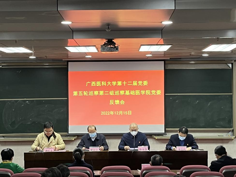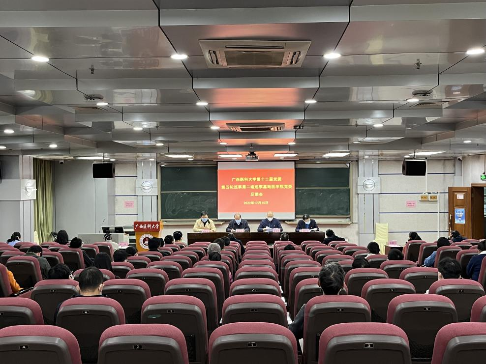 12月15日,学校第十二届党委第五轮巡察第二巡察组巡察真人百家乐 党委反馈会在校本部综合楼一楼报告厅举行,学校党委巡察工作领导小组成员、组织部部长覃远汉,驻校纪检监察组副组长陈有转,第二巡察组副组长陈永强以及巡察组其他成员出席会议。真人百家乐 党委委员、中层领导干部、副高级以上职称人员、党外代表人士、退休人员代表及学生代表等参加会议。会议由学院党委书记谭机永主持。