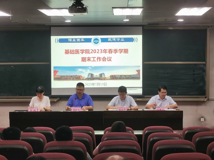 会上,李文奇副书记对做好学生暑期实践活动与安全稳定工作进行布置,并再次加强教职工假期廉洁教育提醒。罗彬副院长对分管的教学工作进行总结,对下学期教学工作和本科教育教学审核评估工作进行部署。蓝秀万副院长对科研工作、研究生管理、一流学科建设中期评估和基础医学中心实验室仪器共享平台使用等方面进行布置和说明。