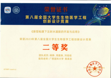 经过初审、预赛的激烈角逐,我校真人百家乐 生物技术专业杨静、周盈珠、刘佳佳同学组成的参赛队伍(指导教师:陈泉志)成功入围决赛。在决赛答辩中,团队成员沉着应答、配合默契,脱颖而出,其作品“新型粘膜下注射水凝胶的开发与应用”荣获二等奖。