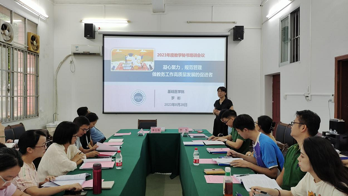 培训会上,李文奇副书记充分肯定了教秘老师们的辛勤付出,强调教学秘书在落实学校教学方针政策、保证教学工作的顺利开展、切实提高教学质量中发挥着重要的作用,殷切希望一是提高政治站位,强化责任担当。二是树立管理就是服务的思想,具有合作精神和奉献精神。三是切实增强本领、紧抓工作落实,扎实做好岗位工作。接着,罗彬副院长围绕“教学秘书是什么”、“为什么要做教秘”和“如何做教秘”三个方面做了教学秘书职责和工作培训,详细阐述了教学秘书的职责、角色定位、管理的工作职责及具备的能力素养,并期望大家共同努力做好基层教学管理工作。