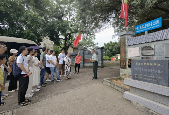 随后,党员教师来到位于六秀村的中共广西省工委横县会议旧址参观学习。通过讲解员韦昌旷同志的详细介绍,大家回顾了中共广西省工委横县会议的历史背景、召开情况和重要意义,对这一广西革命斗争史上,顺利实现工作重心战略转变,把广西革命斗争推向崭新阶段的关键性会议有了较为全面和深入的了解。