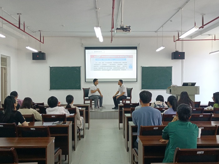 本期论坛分为两个环节。首先,由辅导员易姗姗老师就如何提升学院“基础青年圈”微信公众号作品的传播力、引导力和影响力,打造符合学院特色的数字IP形象提出思路与举措,并结合新媒体时代高校网络思政工作重点提出设想与建议,与会辅导员纷纷结合实际展开热烈讨论。其次,辅导员罗长钦分享了参加第十二届广西高校辅导员素质能力大赛观摩心得体会,具体分析了大赛笔试答题思路、案例研讨策略和谈心谈话技巧,还邀请宋传权老师现场演练和模拟案例研讨,双方互问互答,彼此补充,达成研讨共识,让与会辅导员感受到亲临比赛的氛围。