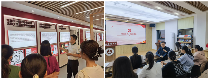 学习活动共分为两部分进行。首先是参观学校党建展示馆,在参观中成员们学习了中国共产党领导卫生健康事业发展历程、学校在党的领导下取得的历史性成就以及学校党建引领医学教育、医疗卫生高质量发展的成果与特色三个部分的内容。其次是进行党课学习,由党支部书记和支委组织大家一起学习党史、网络意识形态安全、廉洁文化与党内法规等内容,党课内容详实,案例生动丰富。