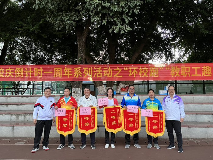 11月17日下午,我校90周年校庆倒计时一周年系列活动之“环校跑”教职工趣味运动会在南宁校本部田径运动场举行,活动包含“环校跑”“智勇大闯关”“趣味冰壶”等项目,真人百家乐 教职工积极参与,齐心协力,奋勇拼搏,经过激烈的角逐,最终以总分第三名的成绩荣获二等奖。