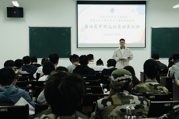 为进一步激发学生运动员的参赛激情,加强运动员备赛、参赛的积极性及相关注意事项的提醒,11月7日晚,学院团委在A4-121学生活动室举行学校第三届校园体育文化艺术节暨第五十二届田径运动会学生运动员动员大会。学院团委老师及全体参赛运动员共同参与本次大会。