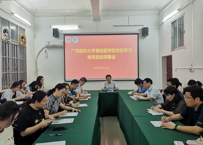 谭国鹤书记传达学习了自治区党委《关于在全区开展党纪学习教育的实施方案》以及学校党纪学习教育启动部署会精神。他强调,开展党纪学习教育,是今年党建工作的一项重要政治任务,是加强党的纪律建设、推动全面从严治党向纵深发展的重要举措。为扎实开展好学院党纪学习教育,他提出三点意见。一是切实提高政治站位,站在坚定拥护“两个确立”、坚决做到“两个维护”的政治高度,充分认识开展党纪学习教育的重大意义。二是不折不扣抓好学习贯彻,准确把握党纪学习教育的目标要求和学习重点,推动《中国共产党纪律处分条例》入脑入心入行。三是强化学用结合,推动履职尽责,围绕学院实际和学校重点工作开展好党纪学习教育,确保取得实实在在的成效,为学院高质量发展提供坚强纪律保障。