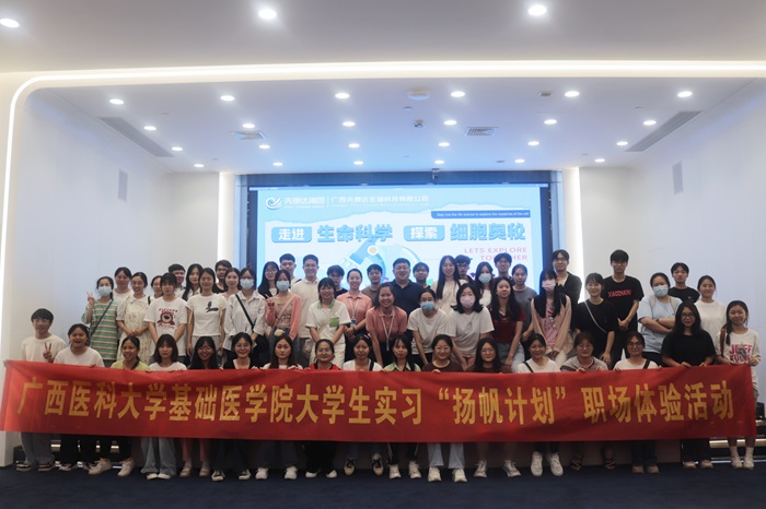 广西先康达生物科技有限公司是一家集细胞研发、细胞生产制备、细胞储存等于一体的高新技术企业。在职场体验活动中,同学们首先整体了解了公司发展历程、业务范围、产品布局等情况,并实地参观了科普馆和实验室。公司技术部门负责人重点介绍了公司的前沿研究、细胞药物治疗发展趋势、人才能力培养目标等情况,激发了同学们兴趣,拓宽了同学们见识。最后,公司人力资源负责人介绍了公司的岗位设置、招聘条件和晋升途径等情况,为同学们职业规划提供明确指导。同学们纷纷表示,此次职场体验收获很大,不仅丰富了知识,还全面了解了企业最新研究领域,对将来个人职业规划有很大帮助。
