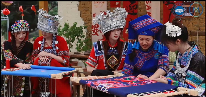 学院大学生新媒体中心学生团队于3月底赴武鸣“纳福非遗文化研学基地”,身着民族传统服饰走进壮家小苑,向民间非遗文化刺绣老师学习传统壮族刺绣、扎染工艺,参观现代壮族服饰生产工厂,体验传统手工艺品壮族绣球、香囊等制作过程,“身临其境”感受壮族传统民族文化技艺。