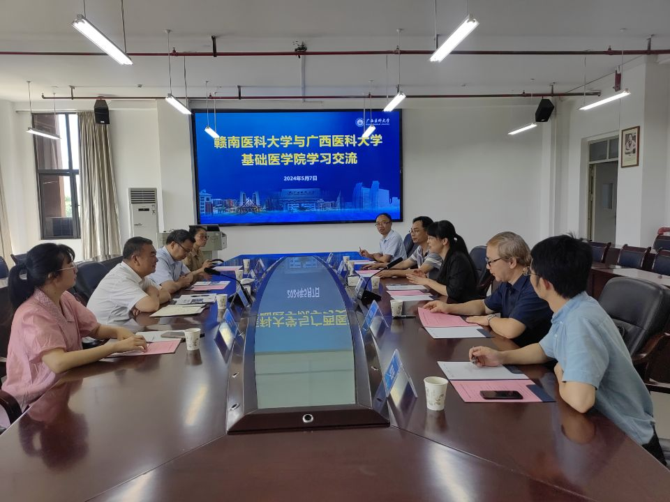 5月7日,赣南医科大学真人百家乐 院长谢水祥、教务处副处长黄光生等一行4人到真人百家乐 武鸣校区调研交流。