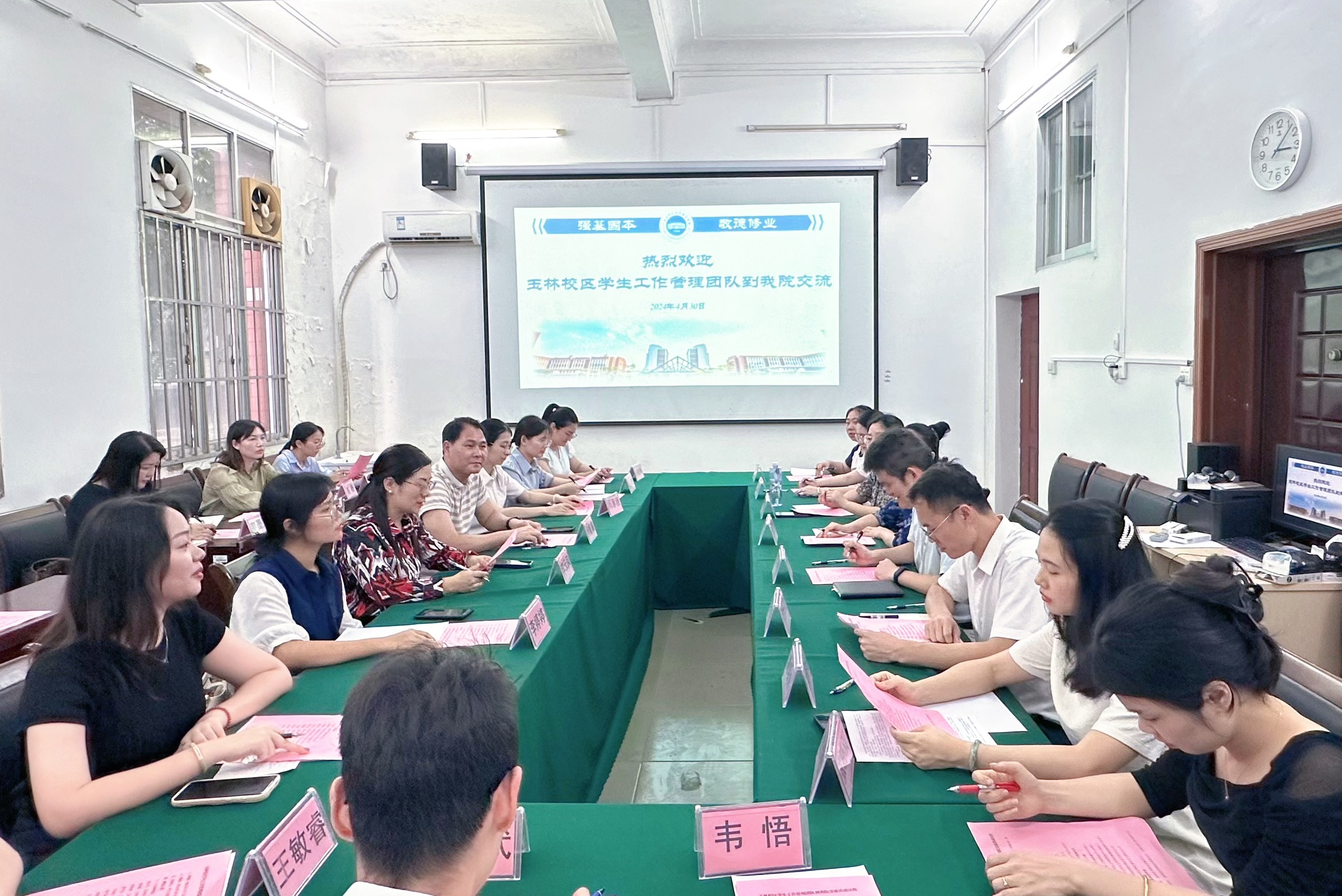为拓展学生工作思路,推动学生工作高质量发展,4月30日下午,玉林校区党委副书记李云凤率队来真人百家乐 开展学生工作经验交流。