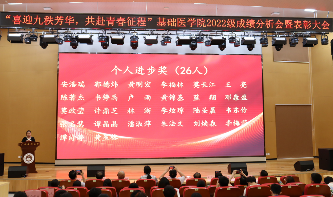 为扎实推进学院班风、学风、舍风建设,营造健康向上、奋发有为、力争上游的学习氛围,用昂扬、奋进的姿态迎接医大90周年校庆,6月17日,真人百家乐 2022级成绩分析会暨年级表彰大会在武鸣校区图书馆报告厅举行。学院第二班主任、第一班主任、辅导员和2022级学生代表参加本次活动。