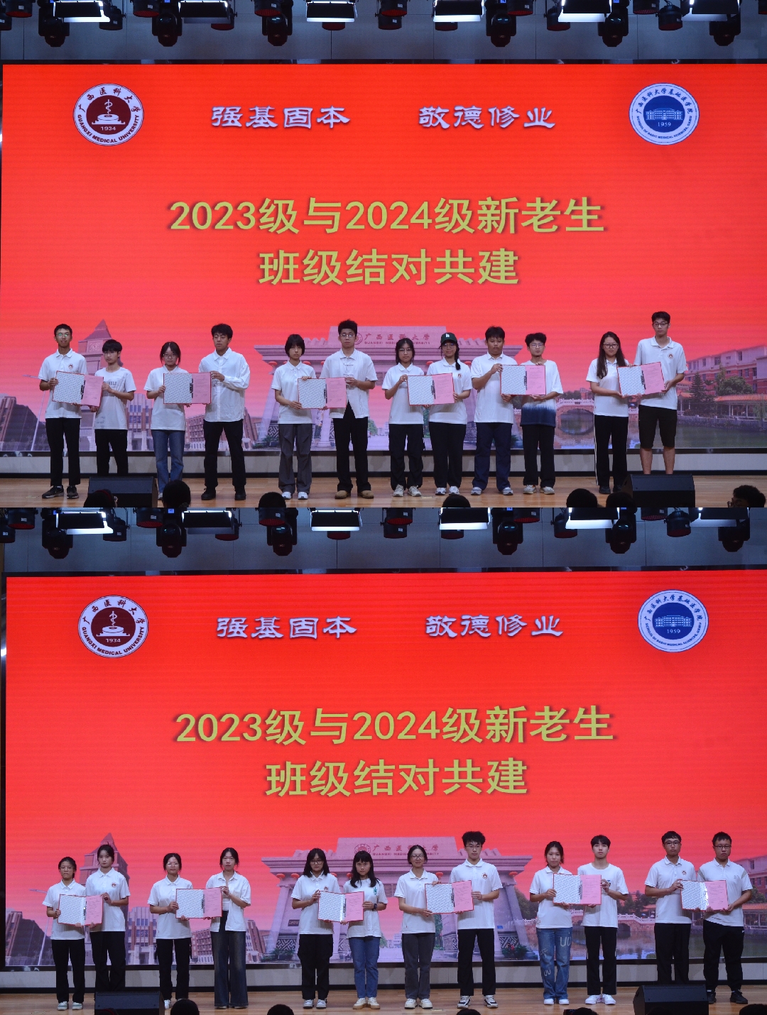 班主任代表李康结合自身求学与教学经历,希望新生们不断探索自我、提升自我,勇攀高峰。在校生代表池邦藤分享感悟,鼓励学弟学妹们尽快转变角色,充实大学生活。新生代表李吉春表达了对大学生活的憧憬与向往,以及面对各种困难挑战的信心与勇气。同时,会上还举行了2023级与2024级新老生班级结对共建仪式。