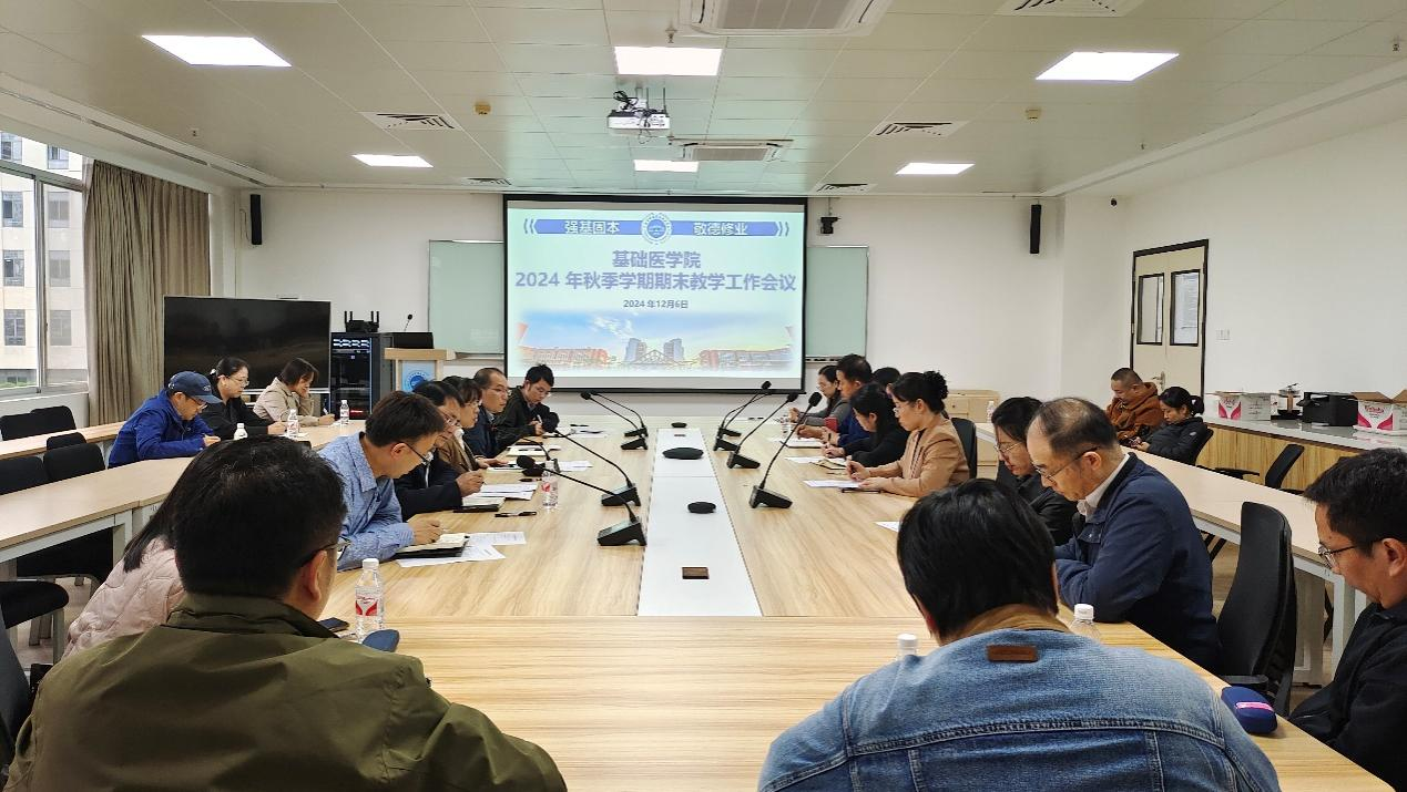 12月6日,真人百家乐 在校本部药基楼5楼会议室召开2024年秋季学期期末教学工作会议,学院院长罗彬、党委副书记王闻楚、副院长蓝秀万、各教研室主任、副主任、党支部书记及教研科、院办相关人员参加本次会议。会议由罗彬主持。